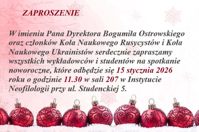 Informujemy, że w dn. 11 grudnia 2025 w Instytucie Neofilologii (filologia rosyjska) odbędzie się Konferencja Naukowa Tradycja słowiańska w dialogu z nowoczesnością. Poniżej prezentujemy program konferencji realizowanej w formie zdalnej...