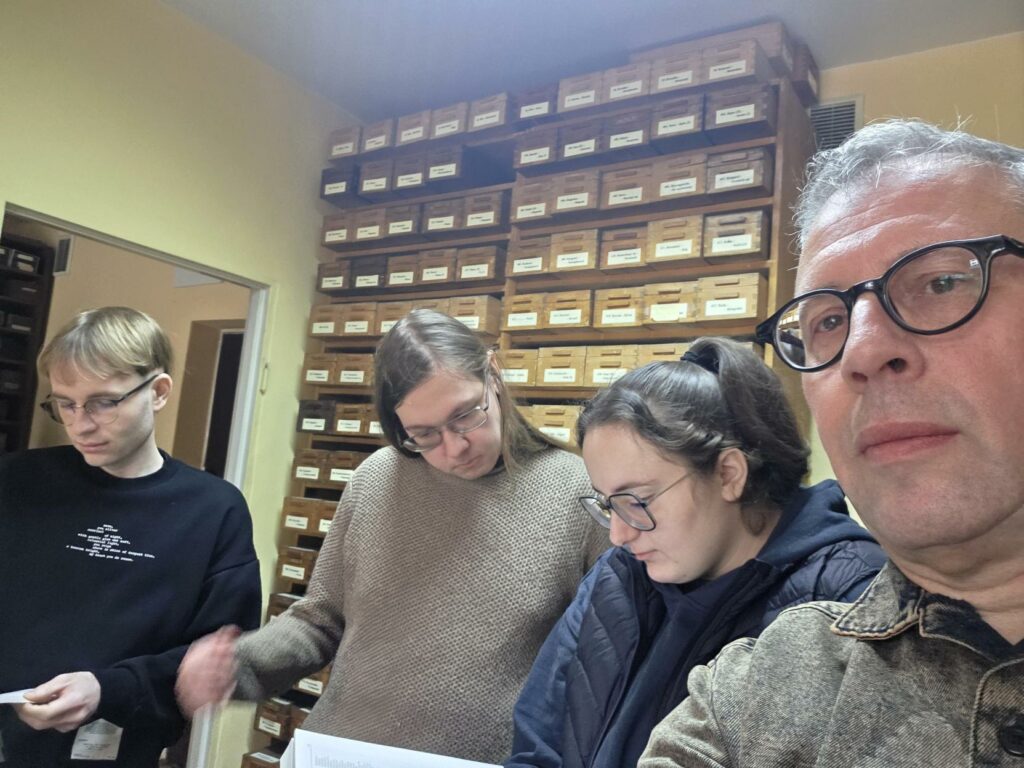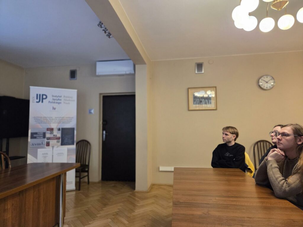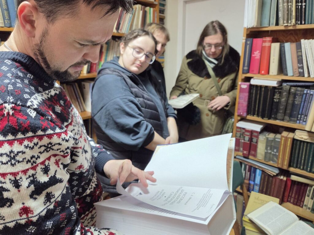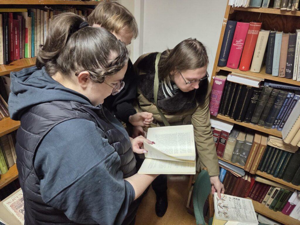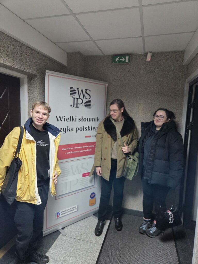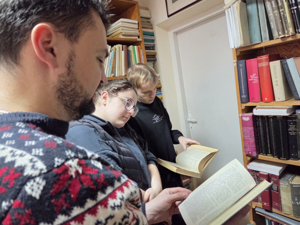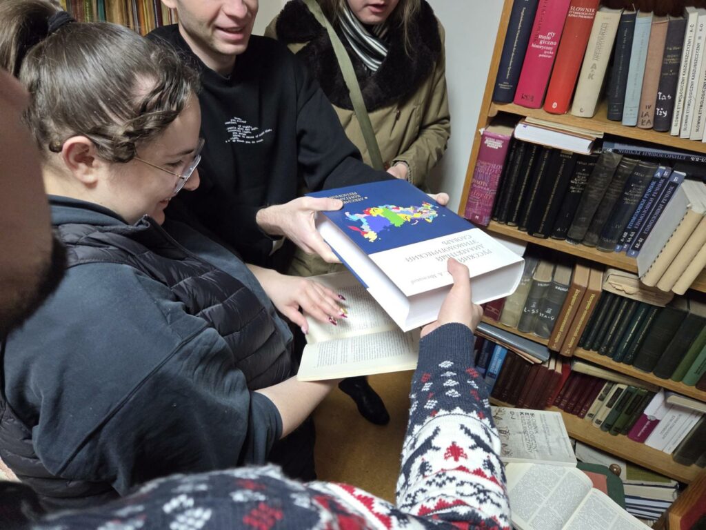 Mimo niesprzyjających warunków atmosferycznych w poniedziałek 12. stycznia 2026 r. studenci II stopnia filologii rosyjskiej wzięli udział w kolejnej edycji warsztatów leksykograficznych, zorganizowanych i moderowanych przez prof. Bogumiła Ostrowskiego. Wizytę rozpoczęto w Pracowni Słownika Prasłowiańskiego, gdzie dr Szymon Pogwizd z Instytutu Slawistyki PAN opowiedział o historii tego ważnego dzieła leksykografii ogólnosłowiańskiej i zaprezentował najnowsze, niedawno wydane tomy słownika oraz jego bazę elektroniczną. Prof. B. Ostrowski scharakteryzował i udostępnił studentom najważniejsze leksykony wszystkich współczesnych języków słowiańskich, zwłaszcza wschodniego obszaru językowego.