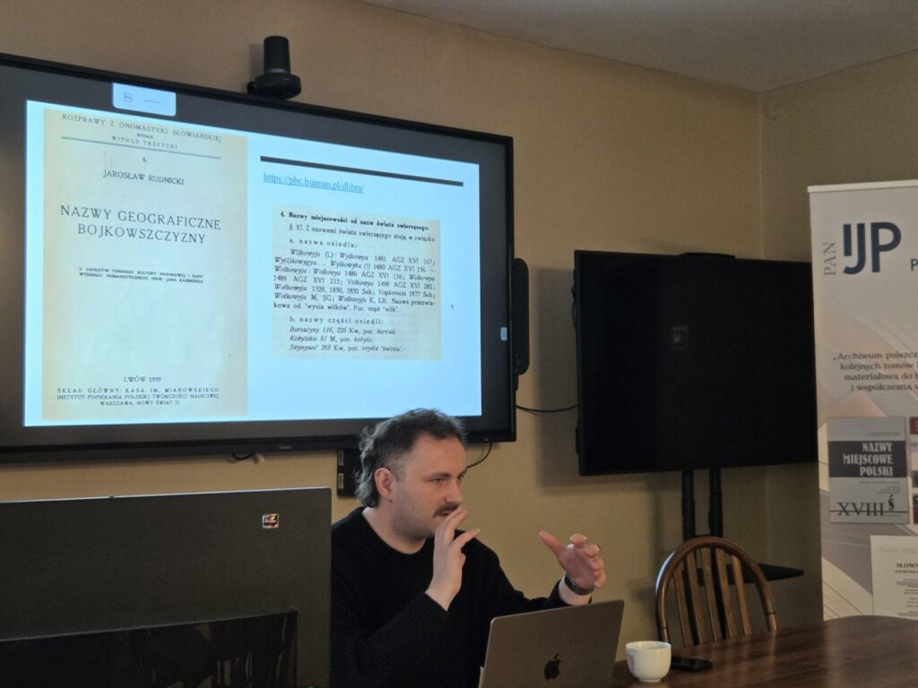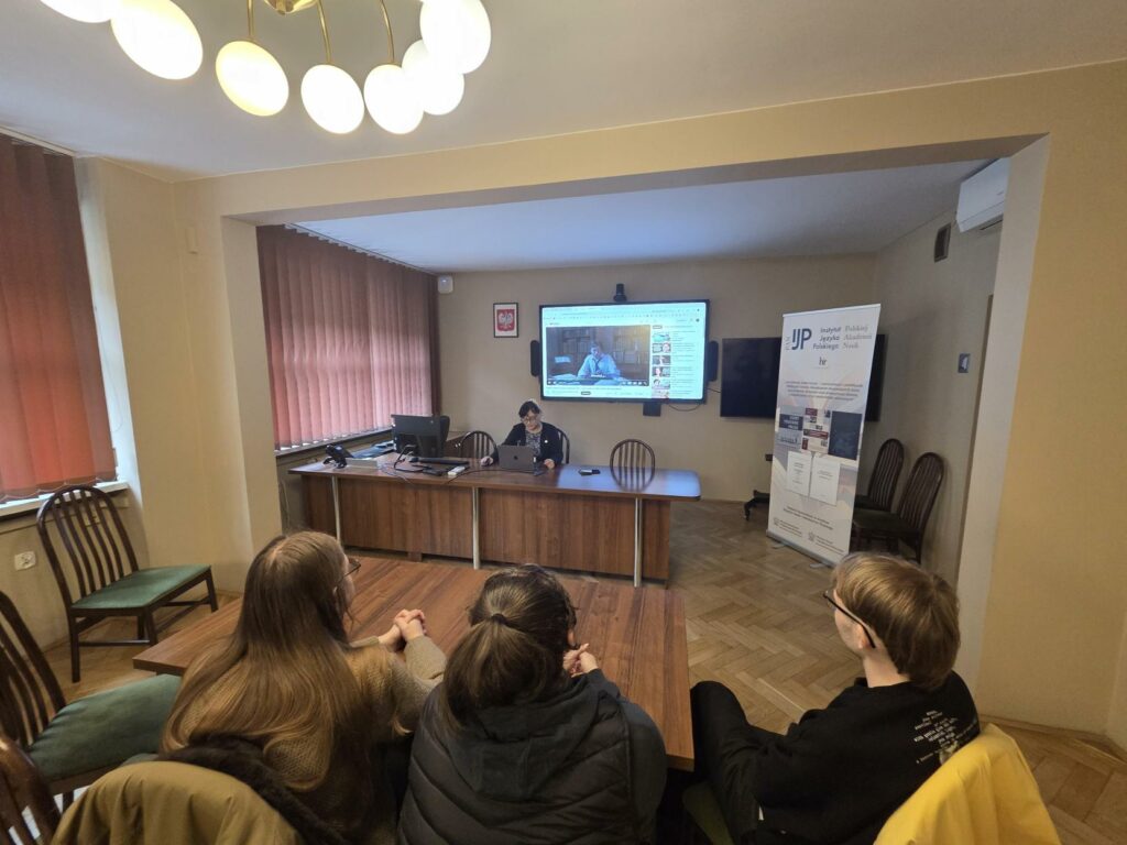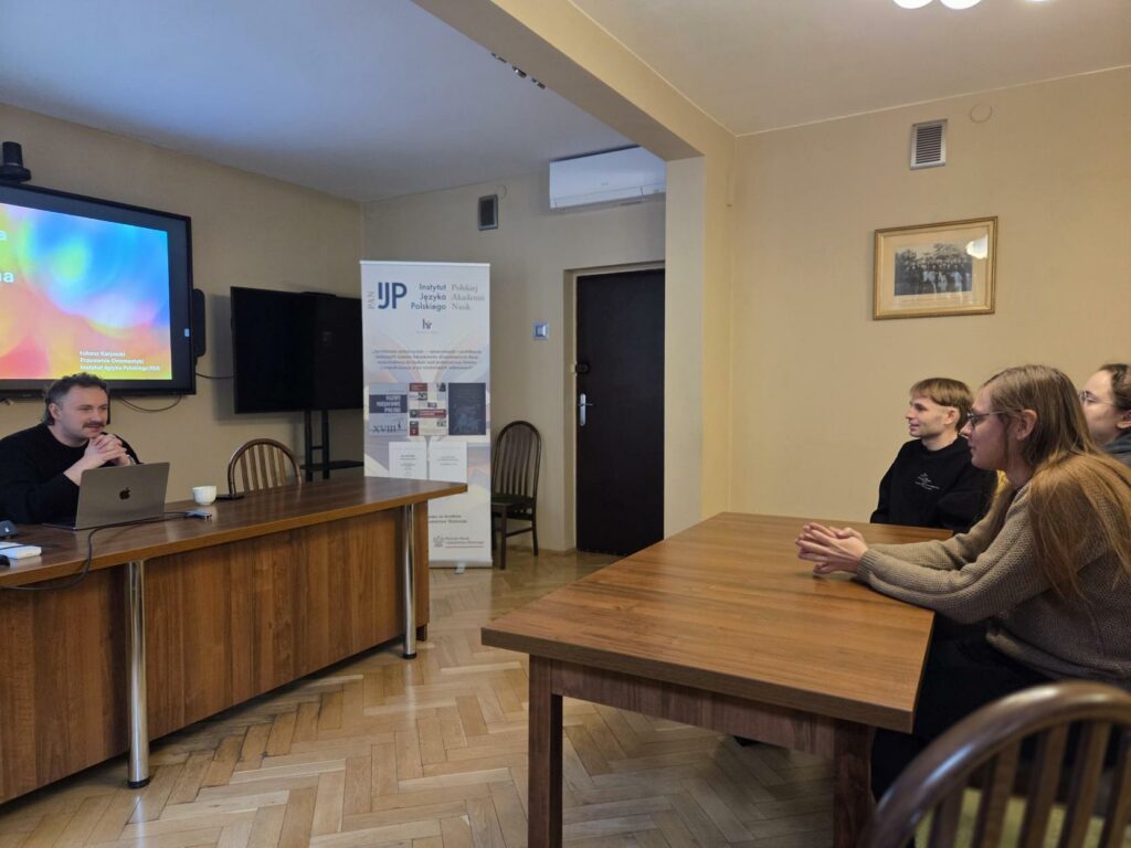 W gościnnych progach Instytutu Języka Polskiego PAN z osiągnięciami leksykograficznymi poszczególnych zespołów zapoznali nas: mgr Łukasz Karpecki, prezentując dzieła Pracowni Onomastycznej kierowanej przez wicedyrektor IJP PAN prof. Urszulę Bijak, dr Anna Miszta, przedstawiając elektroniczny Współczesny słownik języka polskiego pod red. prof. Piotra Żmigrodzkiego (www.wsjp.pl). Prelegentka zwróciła uwagę na ogromny potencjał materiałowy słownika oraz jego ogólnodostępność; zaprezentowała wielorakie sposoby przeglądania i pozyskiwania danych. Na zakończenie dr Emil Popławski z Pracowni Dialektologicznej (kierowanej obecnie przez prof. B. Grabkę) zaprosił studentów do obejrzenia jedynej w swym rodzaju, liczącej blisko 4,5 miliona rekordów, kartoteki Słownika gwar polskich PAN. Zaprezentował też dotychczas wydane tomy słownika, zestawiając zawarte w nim materiały z danymi pierwszego polskiego słownika gwarowego Jana Karłowicza.