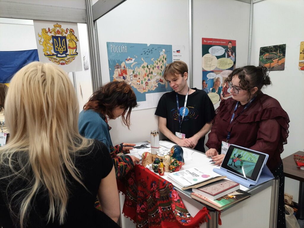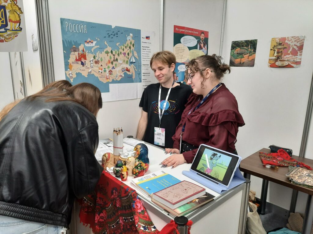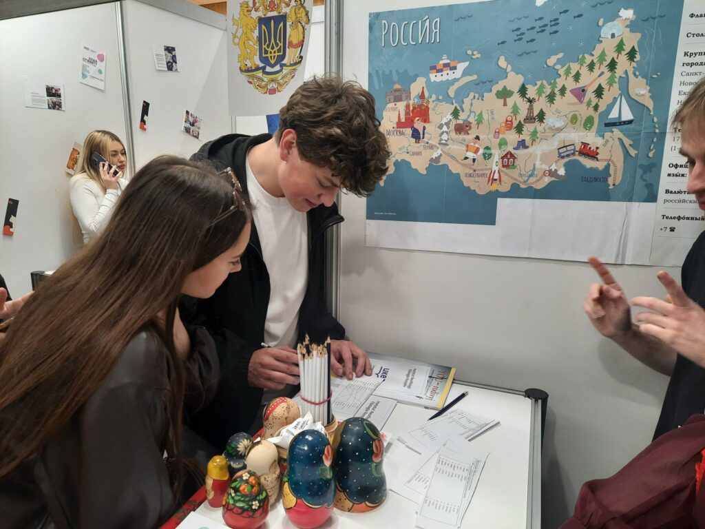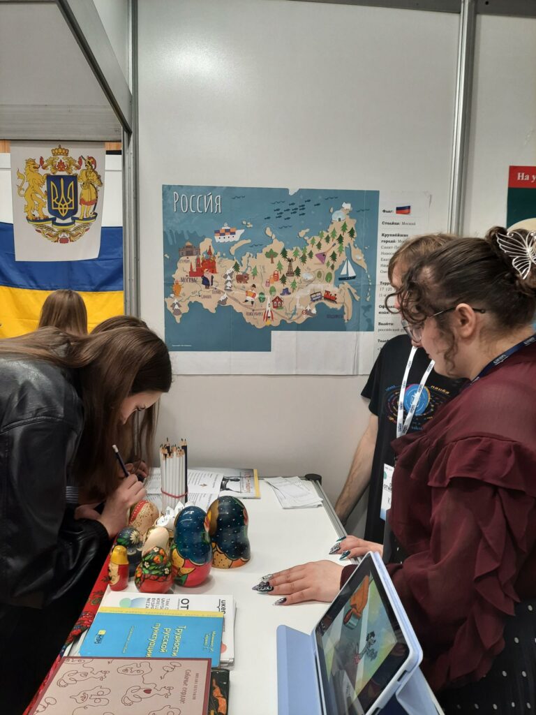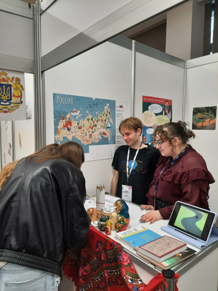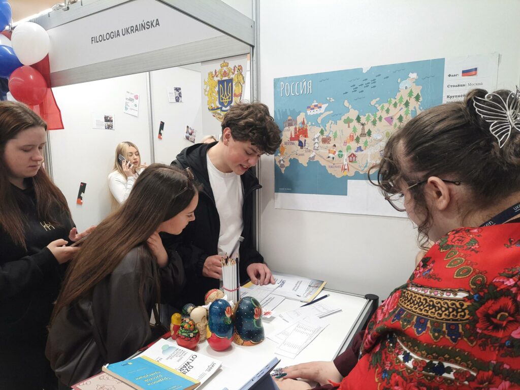 Licealiści odwiedzający nasze stoisko wyrażali szczególne zainteresowanie aktywnościami oferowanymi przez nasz kierunek studentom m.in. możliwościami uczestnictwa w działalności Koła Naukowego Rusycystów i redagowania czasopisma studenckiego „YOU-rodivyj”, perspektywami udziału w wymianach zagranicznych.