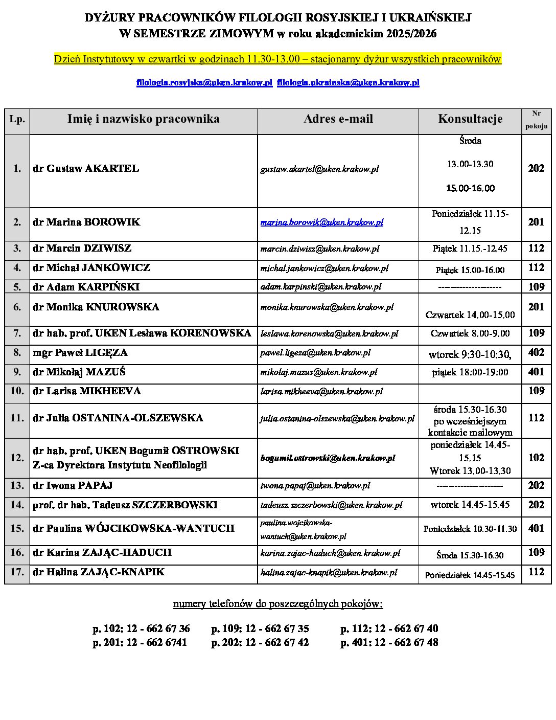Zajęcia dydaktyczne dla wszystkich studentów filologii ro -